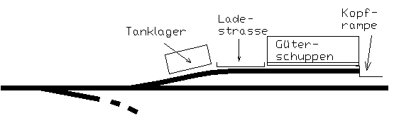 | Tanklager | Z | Diesel, Heizöl, Benzin | 2 | Ein einzelner Tankwagen. |