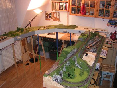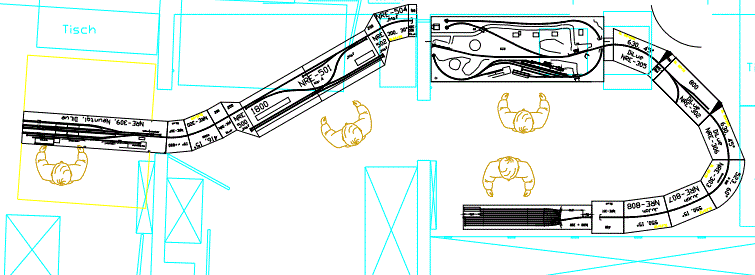 Unter Silvesterlayout versteht man eine private Veranstaltung mit einem bei mir zu Hause aufgebautes Arrangement, bestehend aus meiner Modelleisenbahnanlage und Erweiterungen mit eigenen und fremden FREMOdulen, und dem mit Freunden veranstalteten Modelleisenbahnbetrieb.