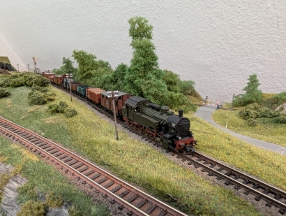 Jedes Jahr wird kurz vor Weihnachten das Arrangement betriebsbereit gemacht. Der Aufbau variiert von Mal zu Mal. Ende Januar wird dann wieder abgebaut. Während das Arrangement steht, herrscht in meiner Wohnung mehr oder weniger Ausnahmezustand. Es wird nach Absprache Betrieb gemacht. Thema ist der Ausgang der so genannten Epoche I, genauer das Jahr 1919, also kurz vor der Gründung der Deutschen Reichsbahngesellschaft (DRG). Gefahren wird nach Fahrplan und Modellzeit mit Wagenkarten und Frachtzetteln nach dem Vorbild des FREMO-Betriebs.