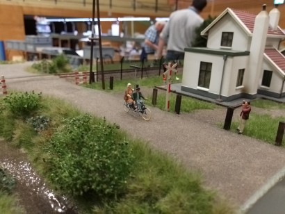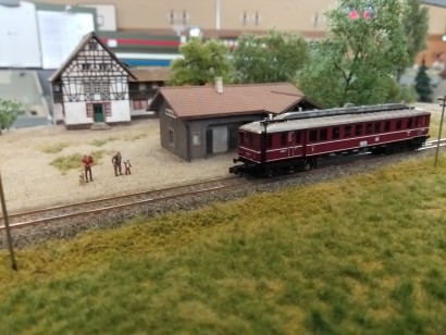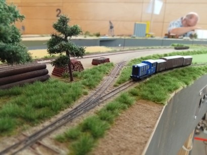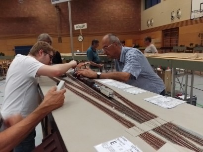 Einige Worte noch zu dem H0-Teil des Treffens. Eigentlich lautet der Titel des Treffes "FREMO:87 Südtreffen in Gochsheim". Die N-Bahner sind traditionell Gäste auf dem von H0-Bahnern organisierten Treffen. Nur ganz kurz für N-Bahner, die nicht wissen, was FREMO:87 ist: Das sind die Jungs, die mit maßstäblich aussehender Schraubkupplung und maßstäblichen Spurkranz fahren. Mich hat die präzise Bauausführung der Gleisanlagen (und dabei besonders der Schiebebühnen in den Schattenbahnhöfen) schwer beeindruckt! Aber nicht nur das. Landschaftsgestaltung und selbst die Modulkästen zeugen von hohem handwerklichem Niveau. Ich habe eine Weile dort herumgelungert und habe etliche Anregungen mitnehmen können. Außerdem: Viele Triebfahrzeuge waren mit Sound ausgestattet. Trotzdem war der Geräuschpegel nicht aufdringlich - im Gegenteil. Bereits in einem Abstand von 3-4 Metern hat man von den Betriebsgeräuschen kaum noch etwas gehört.