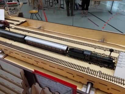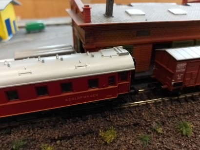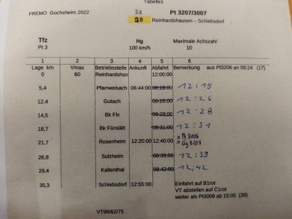 Der Fahrplan lief über einen langen Zeitraum von 5 Uhr früh bis 21 Uhr, was dazu führte, dass er über das gesamte Treffen nur knapp dreimal gefahren werden konnte. Er war sehr anspruchsvoll gehalten, denn unter anderem enthielt er Übergänge von Kurswagen und Postwagen sowie die Verteilung von Milchwagen (Moha-Wagen). Laut diesem Plan erreichte auch ein Schlafwagen den Hafen (wobei mir entfallen war, was der betriebliche Hintergrund war, siehe PS). Da der Fahrplan ohne die Hilfe einer Fahrplansoftware erstellt wurde, war es nicht weiter verwunderlich, dass er kleinere Fehler enthielt, die wir im Laufe des Betriebs lernten zu kompensieren. Ganz normaler Fremo-Betrieb also (grins). Der einzige fest besetzte Bahnhof war Rosenheim. Heißt also, dass auch die Schattenbahnhöfe an den Enden der Strecken nicht besetzt waren, was eine sehr interessante Herausforderung darstellte. Rosenheim, als Spinne im Netz, hatte einen stressigen Betriebsablauf abzuwickeln und war deshalb über sie ganze Zeit mit zwei Personen besetzt. Zugmeldungen liefen per Telefon, oder hin und wieder auf Zuruf, wenn RUT gerade mal zickte.