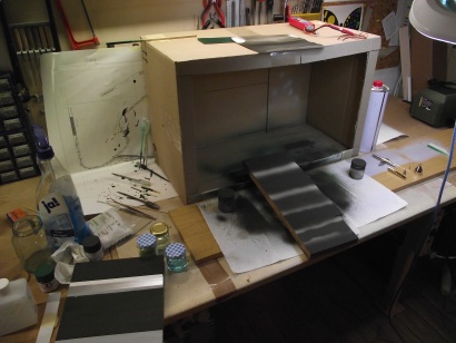 AirbrushIch bin Anfänger beim Thema Airbrush! Ein wenig seltsam ist es schon, dass ich erst jetzt mit dem Thema in Berührung komme, obwohl ich praktisch mein ganzes Leben Modellbau und Basteleien betrieben habe - Flugmodelle, Modellbahn, Kleinmöbel, etc. Bisher hatte ich Farben und Lacke ausschließlich mit dem Pinsel aufgetragen. Erst jetzt, durch den Bau des Lotsenbootes, ergab sich die Notwendigkeit, Farbspritzen zu lernen. Da ich also kein Experte bin, sondern ein unerfahrener Anfänger, liegt es mir fern, kluge Ratschläge zu geben. Das steht mir einfach nicht zu. Statt dessen will ich einfach erzählen, wie ich den Einstieg erlebt habe. Natürlich wollte ich schnelle Erfolge sehen und vor allem wollte ich mir das Spritzteil (das erste Opfer war der Rumpf des Lotsenbootes) nicht verhunzen. Die Industrie bietet eine nicht zu überblickende Vielzahl an Equipment an. Im Internet findet man auf konkreten Fragen zur Eignung für ein gewisses Vorhaben häufig Antworten, die beginnen mit "Es kommt halt darauf an. ....". Was ich wissen wollte war: Welches Equipment ist kein Fehler in der Anschaffung? Zum Glück habe ich ein paar Freunde mit Erfahrung beim Airbrushen, die mir dabei mit ersten Ratschlägen und Demonstrationen weiter geholfen haben. Vielen Dank an Jörg und Elvis für die Geduld mit mir. Als erstes habe ich gelernt, dass ein Airgun ein Universal-Tool ist, das man für ganz unterschiedliche Dinge einsetzen kann. Das sind z.B. Malereien, also Herstellen von Bilden, graphischen Kunstwerken, Alterungseffekte oder auch einfach zum gleichmäßigen dünnen Auftragen einer Farb- oder Lackschicht. Das letzte ist nur ein Fall von vielen - und nicht einmal der häufigste, so kommt es mir jedenfalls vor. Daher ist es auch so schwer, im Internet brauchbare Hilfen und Anleitungen für einen konkreten Anwendungsfall zu finden - "Es kommt halt darauf an. ....". Tip für Schiffsmodellbauer wie mich: Schaut mal bei den Leuten nach, die Karosserien von Automodelle mit der Airbrush lackieren. Slotcars etc. Hier scheinte es eine große Community zu geben, die sehr hilfs- und auskunftsbereit ist. Nach der Anschaffung einer Grundausstattung (Liste siehe weiter unten) habe ich also zunächst ausführliche Experimente und Übungen gemacht. Gespritzt wurde zunächst in einen präparieren Karton (Bild 1), bis ich mir dann doch eine Abzugseinrichtung zulegte, die letztendlich im Regal installiert wurde (Bild 5), damit sie jederzeit benutzbar ist. Die richtigen Farbtöne mussten ermittelt werden. Als Spritzuntergrund habe ich ich Reste von Regalböden verwendet und darauf Grundierung, Lackierung, Abkleben, Klarlackschichten usw. ausprobiert (Bild 2). Ausserdem bekam alles, was die passende Größe hatte und nicht schnell genug flüchten konnte, eine Farbschicht (Bild 3). Nach etwa 4 Wochen testen war es dann soweit. Der Rumpf wurde abgeklebt und los ging es (Bild 4). Wird fortgesetzt.