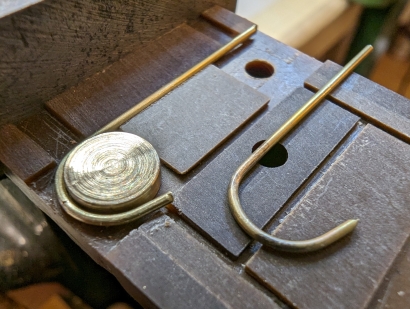 HeckrelingZunächst nur in Stichpunkten: Es geht um die Relingsteile, die am Heck eine Art Aufenthaltsraum hinter dem Führerhaus begrenzen und in die Sitzflächen eingehängt werden konnten. Im Bild 1 sieht man dort mehrere Leute, von denen sich zwei auf der steuerbordseitigen Fläche lümmeln. Die Relingsteile werden aus 0,8 mm dicken Messingdrähten zusammengelötet. Bild 2 zeigt die Zeichnung und den Ansatz einer Vorrichtung zum Biegen und Löten. In Bild 3 werden die Nuten zum Halten der Drähte gefräst, aber 3 mm breit und 0,7 mm tief. Daher müssen an manchen Stellen noch 2,2 mm breite Plättchen eingeklebt werden (Bild 4). Die Plättchen sind 1 mm dick, stehen also über. Also muss noch plan gefräst werden. Dann brauchen wir noch eine Art Deckel zum Fixieren der Drahtstücke, der Aussparungen hat, damit wir mit dem Lötkolben an die Verbindungsstellen kommen. Und für die schrägen Abstützungen braucht es ebenfalls eine Fixierung in Form einer durchbohrten Platte. Bild 5 zeigt alle Teile der Biege- und Lötvorrichtung. Die schrägen Abstützungen müssen angeschliffen werden. Dazu wir ein Proxxon-Bohrfutter in einen Wechselstahlhalter gespannt und darin der Messingdraht. Der Stahlhalter ist um 22° geschwenkt - das ist unser Schleifwinkel (Bild 6). Im Bild 7 sind die ersten beiden Biegeversuche zu sehen. Es empfiehlt sich, den Draht vor dem Biegen weich zu glühen und vor dem Biegen gut wieder zu säubern. Säubern nach dem Biegen ist mühsamer. Bild 8 zeigt die Teile noch unverlötet. Nach dem Löten und herausnehme ist in Bild 9 zu sehen. Das Verputzen der Lötstellen ist noch nicht ganz fertig. Ich habe für den ersten Versuch noch zu viel Lötzinn verbraucht, der jetzt noch weg muss. Bild 10 zeigt die Rückseite vom zweiten Teil, noch unverputzt. Man erkennt sehr schön, dass das Lot schön die Verbindungen umflossen hat. Im Bild 11 posieren die beiden fertigen Teile für die Show. ![]() Bild 1 ![]() Bild 2 ![]() Bild 3 ![]() Bild 4 ![]() Bild 5 ![]() Bild 6 ![]() Bild 7 ![]() Bild 8 ![]() Bild 9 ![]() Bild 10 ![]() Bild 11 |