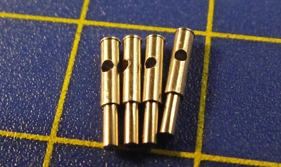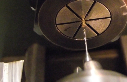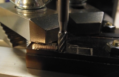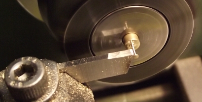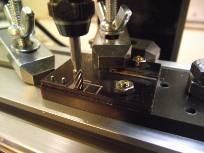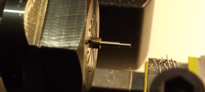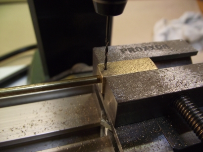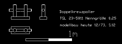 Kreuzpoller![]() Am Bug besitzt der Lotse einen einzelnen Kreuzpoller. Im Dezember 2010 versuchte ich, alle mir fehlenden alten Zeitschriften "modellbau heute" von 1978 rückwirkend bis zur Erstausgabe 1970 zu erwerben. Sehr erfreut war ich, als ich in der Ausgabe 12/73 eine Tabelle mit Maßen für Poller nach TGL fand. Nach kurzer Sichtung meiner Werftzeichnung vom Lotsen war klar, um welche Pollergröße es sich handeln muss. Somit konnte ich eine genaue CAD-Zeichnung erstellen. Aus der Zeichnung geht hervor, dass die beiden Pollersäulen deutlich dicker sind als die Querstange, genauer: Die Pollersäulen sind 1,4 mm dick. Die Querstange hat 1 mm Durchmesser. Heißt also, dass eine 1 mm Querbohrung in den Pollersäulen genau mittig und in der richtigen Höhe angebracht werden muss (siehe Bearbeitungsziel Bild 4). Das geht natürlich nur mit einer Vorrichtung, die allerdings sehr einfach sein kann. Es ist ein kurzes Stück 8x8 mm Messingprofil, von dem die Stirnseiten plan gefräst sind. Das Profil wird senkrecht in den Schraubstock gespannt und bekommt etwa in der Mitte der Stirnseite eine genügend tiefe 1,4 mm Bohrung, so tief dass die Pollersäule plus deren Zapfen darin Platz hat. Die Y-Achse des Kreuztisches ist dabei geklemmt. Jetzt wird, natürlich ohne die Y-Achse zu verändern, das Messingprofil auf waagerecht umgespannt. Von der linken Seite wird das Maß von der Stirnseite ertastet, Skalen genullt, und dann per X-Koordinate der Abstand Pollerkopf-Querstange weiter gekurbelt. Dort wird die 1 mm Querbohrung eingebracht. Während der folgenden Arbeitsgänge wird am Kreuztisch nichts mehr verstellt. Die Pollersäule entsteht aus 3 mm Rundmessing. Es wird zunächst die Länge der Pollersäule auf 1,4 mm abgedreht und anschließend der 1 mm Zapfen, mit dem die Säule im Poller-Fundament steckt (Bild 1). Dann wird das Ende mit der Pollersäule bis auf Anschlag in die waagerechte Bohrung der Vorrichtung in der Fräsmaschine gedrückt und von oben quer durchbohrt (Bild 2). Die Querbohrung in der Säule entsteht dabei, wie gewünscht, genau mittig und an der richtigen Stelle, und: Alle so hergestellten Pollersäulen sind genau gleich. Die jetzt durchbohrte Säule geht zurück in die Spannzange der Drehmaschine. Es wird der Kopf auf den richtigen Durchmesser gedreht und dann auf Kopfhöhe abgestochen. Jetzt muss ich gestehen, dass ich die leicht abgerundete Oberseite des Kopfes nicht präzise nach Maß auf der Drehmaschine drehen konnte. Mir fehlte damals die passende Spannzange. In der nächstgrößeren Spannzange von 2 mm hielt die 1,4 mm dicke Säule nicht. Statt dessen habe ich das Teil in die Proxxon-Bohrmaschine gespannt und nach Augenmaß mit der Feile gerundet. Vier Pollersäulen sind im Bild 4 zu sehen. Wie üblich habe ich ein paar mehr Teile gemacht, als eigentlich notwendig wären. Jetzt zur Querstange. Sie hat an den Enden Verdickungen von 1,1 mm. Diese müssen also nach dem Einschieben in die Pollersäulen angebracht werden, zumindest eine von beiden. Aus Symmetriegründen beschloss ich, beide Enden mit einzelnen Verdickungen auszustatten. Bei einem 1 mm Messingstab wurden die Enden plan gedreht und mit einer ca. 1mm tiefen Bohrung von 0,5 mm Durchmesser versehen (Bild 5). Im Bild 6 wird die Verdickung gedreht. Zunächst eine Länge auf 1,1 mm gedreht und dann vorsichtig die 0,5 dicke Achse abgedreht. Drehstahl ist ein 1,4 mm breiter Abstechstahl, der sehr scharf geschliffen und in der Höhe genau eingestellt ist. Zum Schluss habe ich die Verdickung mit einer Zange einfach abgeknippst (Tip: Maschine vorher von Drehspähen befreien, denn wenn der kleine Pips zwischen die Späne fällt, findet man den nie wieder.). Bild 7 zeigt die probeweise zusammengesteckten Teile und den ersten Pips. Das Fundament habe ich mit der gleichen Technik hergestellt, wie auch die der normalen Poller, allerdings ist die Vorrichtung etwas einfacher gehalten. Also: In die Vorrichtung werden Löcher für zwei 1 mm Stifte koordinatengebohrt (Bild 8). Das Messingblech für das Fundament bekommt ebenfalls 2 Löcher koordinatengebohrt und wird dann um die Löcher herum mit etwas Übermaß ausgesägt. Dann wird das Blech auf die Stifte gesetzt und auf das genaue Maß umfräst. Als Vorrichtung habe ich eine Ecke der Lötvorrichtung der "großen" Poller wiederverwendet (Bild 9). Bild 10 zeigt einen zusammengebauten Poller und die Teile für einen zweiten. Gehalten werden die Teile durch winzige Tröpfchen Sekundenkleber. Nach dem Farbspritzen rutsch da nichts mehr auseinander.