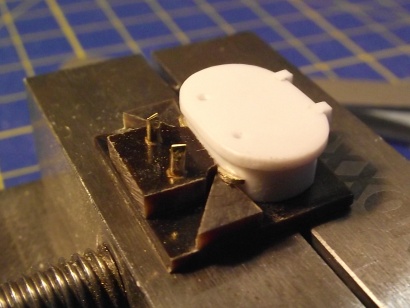 ![]() Bild 1 ![]() Bild 2 Erfolgloser Fräsversuch ![]() Bild 3 Gedrehte Feilkörper ![]() Bild 4 Gefeilte Teile ![]() Bild 5 Einfäsen Scharnierandeutung ![]() Bild 6 Fäsen Vortreiberausbuchtung ![]() Bild 7 Anschneiden Vortreiberausbuchtung ![]() Bild 8 Fertige Ausbuchtungen ![]() Bild 9 Präzises Ankleben der Ausbuchtungen ![]() Bild 10 Biegevorrichtung für Vortreiber ![]() Bild 11 Luke in situ auf Vordeck |