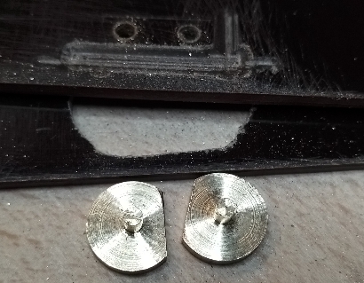 Bild 20 zeigt die Teile der Serienfertigung, teils fertig, teils nicht. Bild 21 zeigt den Prototypen, der als bisher einziger testweise eine Farbschicht per Airbrush bekommen hat. Es hat sich gezeigt, dass die Farbe alle scheinbaren Unebenheiten des Messings überdeckt. Die Sockelplatte des Prototypen ist leider bewußt rundgelutscht, weil ich meinte, das auf einem Foto vom Original so gesehen zu haben. Stimmt aber nicht, die Serienteile sind daher kantig belassen (Bild 22).