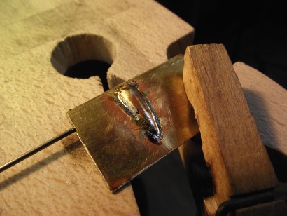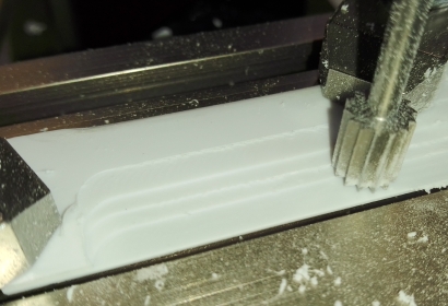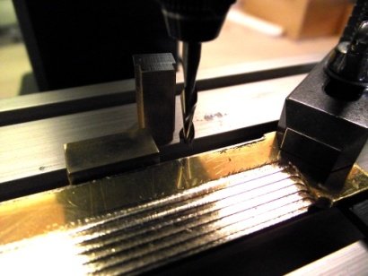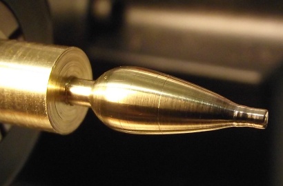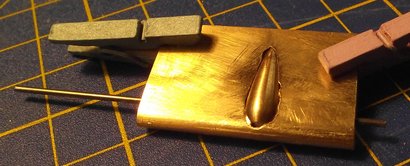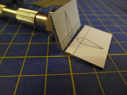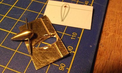 RuderDer Text zu den Bildern entstand erst 2 Jahre nach dem Bau des Ruders. So etwas ist nie gut, da die Erinnerung im Laufe der Zeit immer schlechter wird. Das Ruder besitzt in der Mitte eine sogenannte "Costa-Birne" (im Folgenden nur noch "Birne" genannt), die Verwirbelungen durch den direkt davor sitzenden Propeller glätten soll, und somit die Ruderwirksamkeit verbessert. Die Ruderfläche selbst ist profiliert wie eine Flugzeugtragfläche. Bild 2 zeigt die Zeichnung dazu. Zunächst habe ich versucht, das Ruder aus Polystyrol zu fräsen (Bild 1), vor allem auch aus Gewichtsgründen. Die beiden Halbprofile habe ich per stufenweise Abtragung einer Polystyrolplatte gefräst und danach mit Schleifpapier die Stufen egalisiert. Für die 1 mm starke Ruderachse wurde vorher eine 0,5 mm tiefe Nut auf der anderen Seite eingefräst. Die fertigen Teile wurden zusammengeklebt und das so betriebsbereite Ruder eingebaut. Funktionierte soweit. Die Birne wollte ich aus Polystyrol drehen nf fräsen und irgendwie auf die Seiten des Blattes aufkleben. Ich erspare hier die Details - es hat nicht funktioniert. Das Ruder habe ich letztendlich noch einmal gebaut, diesmal aus Messing. Zunächst die Erläuterung für Bild 3. Wir haben es mit drei verschiedenen profilähnlichen Umrissen zu tun. Die weiße Linie zeigt das Profil des Ruderblattes. Daraus kann die Tiefenzustellung des Fräsers ermittelt werden. Die rote Linie ist die Außenkontur der Birne. Danach wird die Birnenform auf der Drehmaschine hergestellt. Die Birne kommt im "Inneren" des Ruderblattes "zu liegen". Die Schnittfläche zwischen Birnenoberfläche und Ruderblatt ist die Öffnung im Ruderblatt, in die die Birne eingesetzt (eingelötet) wird. Dies zeigt die grüne Linie. Bild 4 zeigt noch einmal das Profil des Ruderblattes, diesmal mit den tatsächlichen Fräsabständen. In den Bilder 5 und 6 wird das Ruderblatt profiliert. Dies ist dieselbe Technik, wie schon in der Polystyrol-Variante. Die Stufen wurden anschließend wieder vorsichtig mit Feile und Schleifpapier geglättet (Bild 7) und erst danach die Ruderhälfte aus dem Blech getrennt (Bild 8). Im Bild 10 ist die fertig gedrehte Birne zu sehen. Sie wurde anhand der roten Linie in Bild 3 erst stufenweise gedreht (Bild 9) und dann wurden per Dreikantschaber die Stufen "weggestichelt". Das Einfräsen der Öffnung für die Birne war recht mühselig und musste per Hand erfolgen (Bilder 11 bis 13). Im Bild 12 sieht man, dass die Birne an der richtigen Stelle eine Querbohrung für die Ruderachse erhalten hat und man erkennt auch die Nut für die Ruderachse an die Innenseite der Ruderblatthälften. In Bild 14 ist es dann geschafft, die Birne liegt im Ruder. Ich war zunächst skeptisch, ob das Blatt nicht doch verpfuscht hatte. Bild 15 ist der Zustand nach dem Verlöten der Teile mit reichlich Zinn. Es folgte langwieriges Verputzen, Glätten und Polieren. Mit dem Ergebnis war ich dann doch zufrieden (Bild 16). Nach dem Spritzen des Ruders (leider kein Bild) stellte sich heraus, dass die Zufriedenheit berechtigt war.