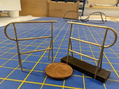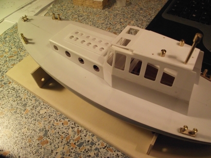 Lotsenversetzboot Typ WarnowBereits als 12-jähriger hatte ich mich in die Warnemünder Lotsenboote verguckt. Mich faszinierten die kleinen Nussschalen, die auch bei schweren Seegang die Lotsen zu einlaufenden Schiffen brachten oder von ausgelaufenen wieder abholten. Mit über 50 habe ich dann endlich angefangen. Ich baue ein Modell des Bootes im Maßstab 1:50. Es wird gute 30 cm lang werden und müsste dann eine Verdrängung (gleich Gewicht) von ca. 270 g haben. Der Einbau einer Fernsteuerung ist trotz dieser Kleinheit heute kein Problem mehr. Lange Zeit stand mir kein genügend genauer Plan zur Verfügung. Bilder der Boote gab es im Internet einige. Erst jedoch durch die Hilfe des leider im September 2021 verstorbenen Jürgen Eichardt, der mir einen Plan der polnischen Exportversion zur Verfügung stellte, waren ausreichende Informationen da, um das Projekt anzugehen. Jürgens Einfluss auf mich bezüglich Modellbau und Herstellungstechniken ist kaum hoch genug zu bewerten. Ich besitze den größten Teil seiner Veröffentlichungen und hatte von ihm auch einige von seinen heute nicht mehr erhältliche Publikationen erhalten. Er war ein außergewöhnlicher Modellbauer und ist für mich Vorbild, wenn ich auch das Niveau seiner Arbeit vermutlich nie erreichen werde. Mit dem Bau des Modells betrete ich modellbautechnisches Neuland, denn der Bau meiner Flugmodelle und meiner Modellbahn benötigte kaum den Einsatz von Maschinen. Jetzt musste ein geeigneter Arbeitsplatz eingerichtet werden, inklusive die Anschaffung von Maschinen für Präzisionsarbeiten (Drehmaschine, Fräsmaschine, Kreissäge, Schleifmaschine ... - alles im handlichen Kleinformat, Airbrush inklusive Kompressor ... ). Und natürlich muss ich lernen, wie man damit arbeitet, um die teilweise sehr kleinen Details an einem Schiffsmodell herzustellen. Weil das alles vielleicht nicht nur für mich spannend ist, halte ich den Baufortschritt über die nächsten Jahre (?) fest. Baubeginn: Juni 2020, Letzte Änderung: 18.11.2023 Bildergalerien bzw. Bauberichte zu einzelnen Themen: