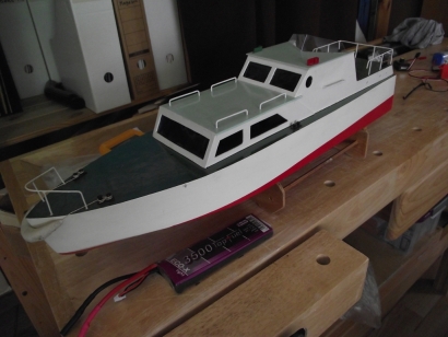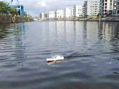 Auch so'n Schiffsmodell (1977 - 2023+)Statt des Lotsenbootes hatte ich bereits als 12-jähriger ein anderes Modell angefangen und das Vorhaben nach einiger Zeit auch erfolgreich zu Ende gebracht. Es begann als sowjetisches Flußkanonenboot und endete nach Umbau als ferngesteuerte Motorjacht. Heute, nach mehr als 45 Jahren, fährt sie noch, beziehungsweise: Sie wird ab und zu wieder gefahren. Von der ursprünglichen Version als Flußkanonenboot habe ich keine Bilder. Auf dem Rücktitel der Zeitschrift "modellbau heute", 1/1986 sind jedoch einiger solcher Modelle abgebildet, allerdings in einem größeren Maßstab. Mein Boot sah anfangs ganz ähnlich aus. Die Jungfernfahrt, noch ohne Fernsteuerung, fand vermutlich um das Jahr 1977 auf dem Schwanenteich in Rostock statt. Anwesende Zeugin war meine Mutter. Die folgenden Jahre war ich beschäftigt, diverse Arten von elektronischen Fernsteuerungen zu entwickeln und auszuprobieren, angefangen von modulierten Licht, über Kabelsteuerung bis zu galvanischen Versuchen. Meine Eltern verweigerten mir standhaft eine käufliche Funkfernsteuerung als Geschenk. Für mich waren die damaligen Funkfernsteuerungen einfach unerschwinglich. Letztendlich kam ich zur Erkenntnis, dass nur der Eigenbau einer solchen zu einem brauchbaren Erfolg führen würde. Eigenbau-Funkanlagen mussten in der DDR von der Post genehmigt und abgenommen werden. Es wurde ein mühsamer Weg. 1983, unmittelbar vor meiner Dienstzeit in der NVA, ließ ich den fertigen 27-Mhz-Sender überprüfen - erfolgreich. Nach einigen Wochen bei der Armee schrieben mir meine Eltern, dass das Genehmigungsschreiben eingetroffen ist. Beim Militär gab es hin und wieder Freizeit, die ich für Entwicklung und Bau der Elektronik im Boot nutzte. Am 25.8.1985 am Bootsanleger am Achterwasser in Neppermin/Usedom fuhr das Boot, damals bereits mit GFK-Rumpf und zur Motorjacht umgebaut, funkferngesteuert mit einer Tip-Tip-Anlage bis an die Sichtgrenze auf das Wasser hinaus. Ich hatte es geschafft! Bereits in den Herbstferien 1981 wurde aus dem Kriegsschiff die heutige Motorjacht. Die jetzt große Öffnung im Deck unter der Kabine ergab eine bessere Zugänglichkeit zu den experimentellen Einbauten im Rumpf. Obwohl bis dahin relativ wenig im Wasser, lösten sich die mit dem Alleskleber Duosan verklebten Sperrholzwände vom Spant-Gerüst. Radikale Abhilfe schaffte ich 1983 dadurch, dass ich den Rumpf mit Harz (Hobbyplast) und Glasmatten abformte. Den ursprünglichen Rumpf konnte ich nur in Einzelteilen aus der so entstandenen GFK-Hülle entfernen. Das Deck wurde auf einer Glasplatte laminiert. Nach noch einigen Verbesserungen und Optimierungen lagerte das Boot lange Jahre in seiner Transportkiste. Pfingsten 1993 hatte ich die Eigenbau-Funksteuerung durch eine 40-Mhz-Graupner-Anlage ausgetauscht, die ich später auch für mein erstes Flugmodell verwenden konnte. Die Probefahrt in den ehemaligen Steinbrüchen von Mühlheim am Main verlief zufriedenstellend. Leider verschwand das Boot wieder für lange Zeit in der Kiste. 2018 dann ein erneuter Schritt. Beruflich bedingt hatte ich plötzlich den Lippe-See bei Paderborn in der Nähe meines Zweitwohnsitzes. Bis dahin immer noch mit dem DDR-Piko-Spielzeugmotor angetrieben, bekam die Jacht einen 400er-7,2V-Motor verpasst und wurde mit einer 2.4-GHz-Anlage gesteuert. Freundlicherweise durfte ich im Vereinsgewässer des MSC-Heusenstamm Probefahrten machen. Mit diesem Motor mutierte das Boot vom gemütlichen Verdränger zu einem rasanten Rennboot. Mit einem 400er-12V-Motor wurde der Antrieb beherrschbar. Es folgten einige schöne Fahrten auf dem Lippe-See und in einem Springbrunnen im Schlosspark von Schloss-Neuhaus. 2020 habe ich ein 1:2,3 Getriebe zwischen Motor und Schraubenwelle gesetzt und konnte Ende Juli die erste Testfahrt im Alten Hafenbecken in Offenbach machen. Die Gasannahme ist mit dieser Antriebskonfiguration deutlich angenehmer. Leider ist es sehr schwierig, Gewässer zu finden, die öffentlich zugänglich und für den Bootsbetrieb geeignet sind. Ab und zu pflügt die alte Lady jedoch auch heute noch durch ein Gewässer.