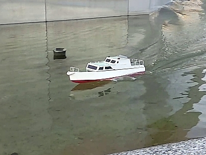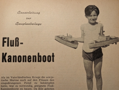 Noch mehr Off-topicIm Zusammenhang der Erstellung dieser Seite ging ich per Google auf die Suche nach den Vorbild des Flußkanonenbootes. Mir war klar, dass der Plan aus der Zeitschrift "Modellbau und Basteln" von 7/1959 nur eine sehr vage Verbindung zu real existierenden Booten haben konnte. Zu meiner Überraschung stieß ich auf recht ausführliche Informationen über das Projekt 1124 des sowjetischen Militärs (Achtung, es geht nicht um das gleichnamige Projekt des U-Bootabwehrschiff der Grischa-Klasse, sondern um Flußkanonenboote der 30er und 40er Jahre.). Bei Interesse einfach mal googeln ("projekt 1124 armored boots"). Es heißt, dass die stark gepanzerten, stark bewaffneten und auch stark motorisierten Boote sehr erfolgreich waren - jedenfalls wenn man das Anrichten von möglichst viel Schaden als Erfolg bezeichnen möchte. Eins jedoch weiß ich: Wer den Rumpf des Modells konstruiert hatte, verstand etwas von schnellen Booten. Heute, mit dem starken Antrieb, läuft das Boot auch in voller Gleitfahrt stabil und gut steuerbar.