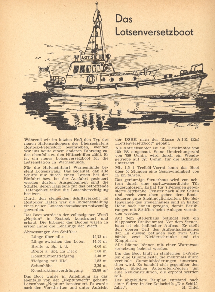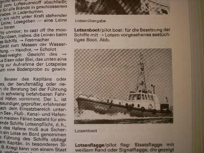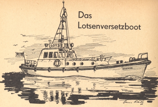 Abfotografiert aus dem Lexikon 'Seefahrt' von transpress VEB Verlag für Verkehrswesen, 1976, dritte Auflage, (im Bestand meines Vaters). Man beachte zwei Kent-Scheiben, aber noch die Bezeichnung "Lotse" auf dem Führerhaus. Die Halterungen für das Schlauchboot lassen sich erahnen. Das Bild muss also vor 1968 aufgenommen worden sein. Ankertasche nicht vorhanden.