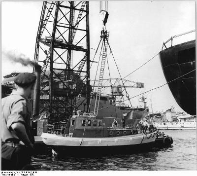 Ausgeliefert mit weißem Rumpf (als einziger der Boote), später dunkel (grün?) wie auch die anderen.