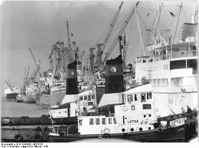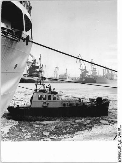 Bundesarchiv_Bild_183-G1021-0007-001,_Rostock,_Ueberseehafen,_Lotsenboote__parken__Frachter