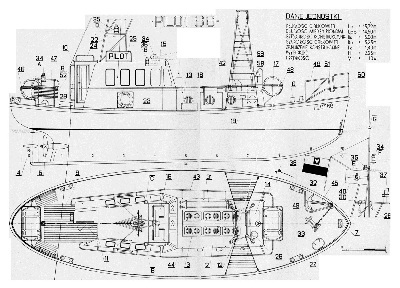 Sehr viel weiter geholfen hat mir Jürgen Eichardt, der mir einen hochauflösenden detaillierten Scan von der polnischen Exportversion und einige Fotos davon geschickt hat. Dafür vielen Dank. Rumpf und Aufbauten der polnischen Boote stimmen mit den Warnemündern überein - bis auf einen Extra-Anbau an der Rückwand des Aufbaus. Selbst die meisten Ausrüstungsteile an Deck befinden sich in diesem Plan dort, wo sie auch in den kleinen Plänen von Herbert Thiel sind. Leider fehlt der Linienriss. Anhand des kleinen Risses und der Bilder konnte ich inzwischen einen recht genauen Riss im CAD erstellen.