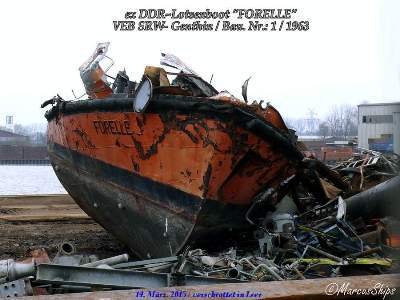 Lotsenboot Forelle bei Verschrottung 2015 in Leer.