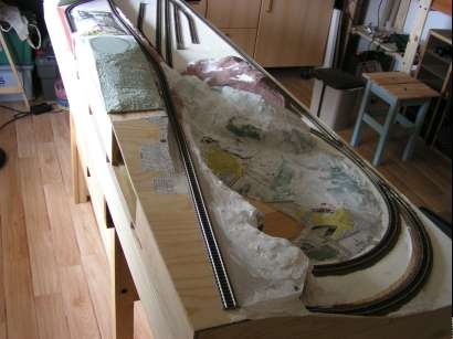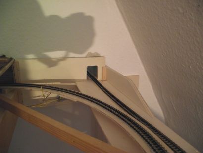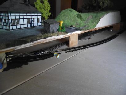 26.4.2011 Auf der rechten Seite der Anlage wurde ein neuer Adapter für das FREMO-Modulsystem notwendig, da der erste Adapter jetzt nicht mehr verwendbar ist.