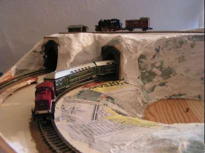 21.5.2005 Blick in den linken Berg auf die Weichen des Schattenbahnhofs.