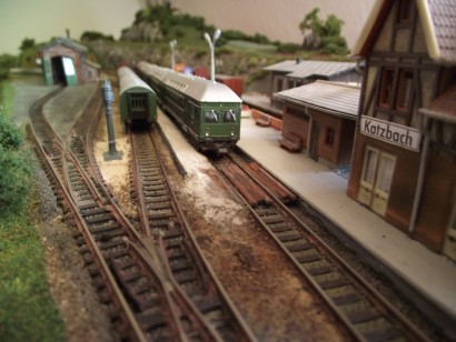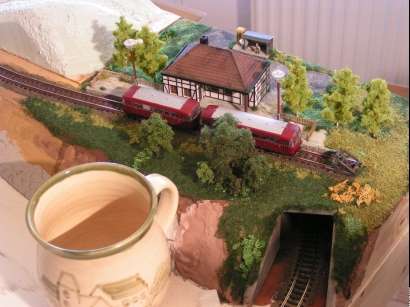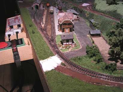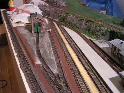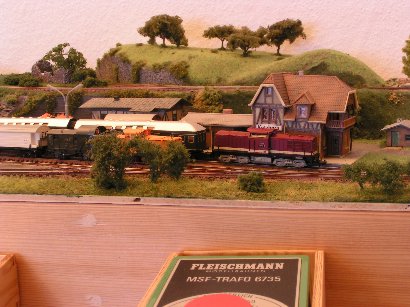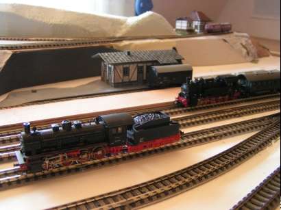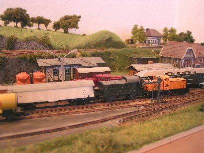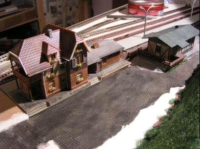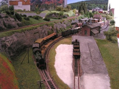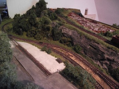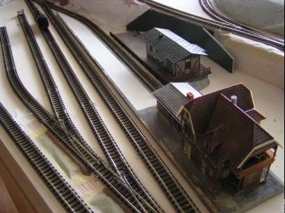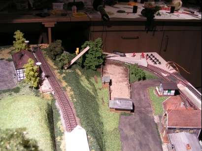Im Januar 2009 habe ich die Gleisführung im Bahnhofsbereich geändert. Die Paradestrecke ist abgebaut. Die linke Bahnhofseinfahrt wurde gefälliger gestaltet und bekam ein zusätzliches Gleis für eine Kombi-Rampe. Der obere Gleisplan zeigt noch die ursprüngliche Gleisführung. Unten sieht man den abgeänderten Gleisplan.