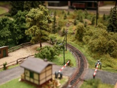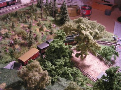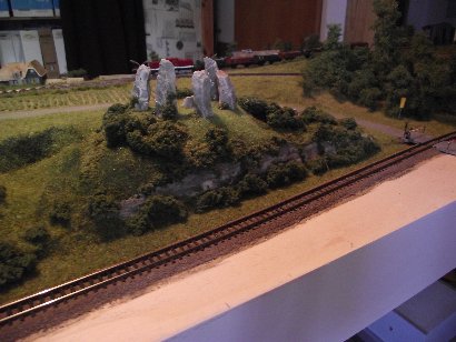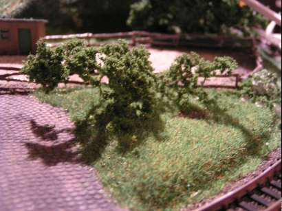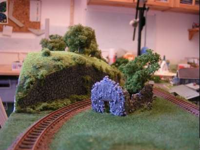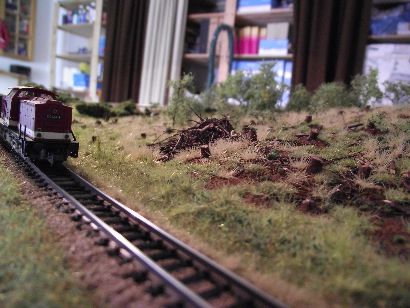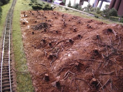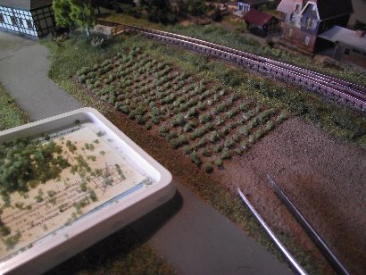 9.7.2016 In dem Waldstück zwischen den Gleisen stecken noch die Modellbau-Pins.