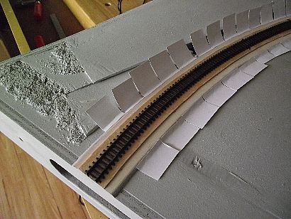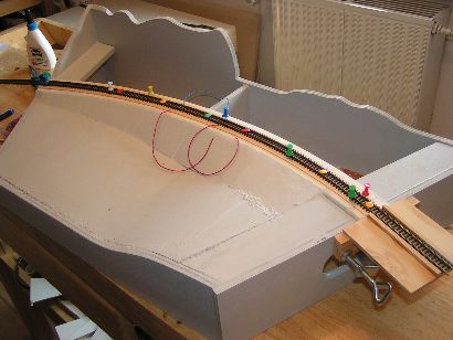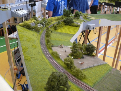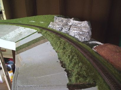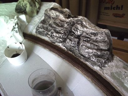 Der Bau ging recht zügig voran. Zwischen ersten Handgriffen und der Probefahrt über die betriebsbereiten Module vergingen gerademal 3 Wochen. Die landschaftliche Ausgestaltung war ab Juli 2011 geplant, jedoch gingen Tunnelbau und Anlagenumbau schneller als erwartet. Daher konnte ich schon Mitte Mai 2011 mit der Gestaltung beginnen. Ende 2011 war die Gestaltung nahezu abgeschlossen