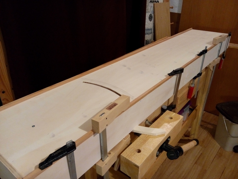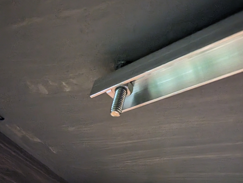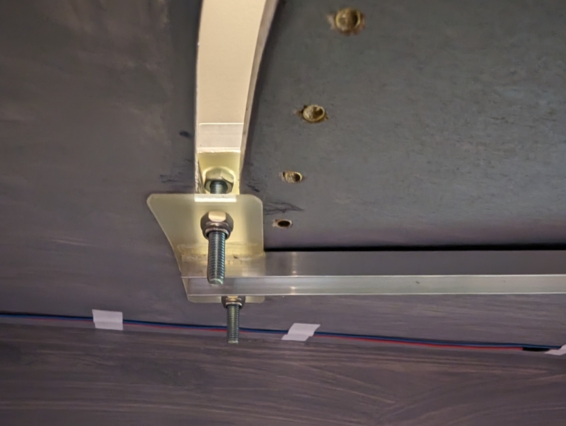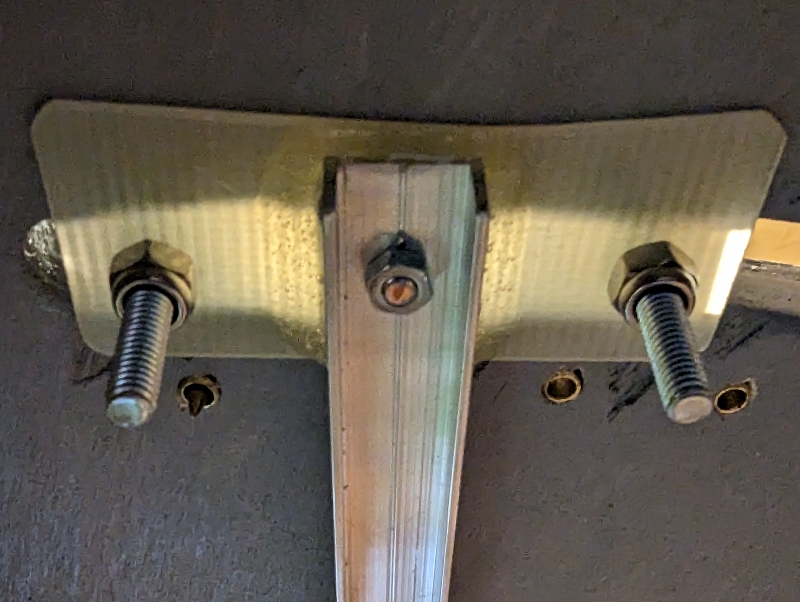 Die Unterseite der Schwenkbühne aus anderer Perspektive. Zur Sicherheit ist die Verbindung zwischen U-Profil und GFK-Platte zusätzlich verschraubt.