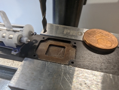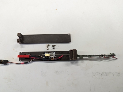 SignalträgerDer Signalträger besteht aus 3 mm bzw. 5 mm starken Pertinax-Teilen. Pertinax deswegen, weil es stabil, hitzebeständig, nichtleitend und gut bearbeitbar ist. Die Bilder zeigen den Prototypen. Ich würde den Träger heute etwas anders bauen - z.B. nur 2 Schrauben verwenden. Daher gibt es zunächst auch keine Zeichnung. Die Einzelteile sind gefräst, was eine sehr gute Genauigkeit ergibt. Man kann ein ähnliches Ergebnis auch ohne Fräse erreichen, indem man die Einzelteile z.B. geschickt aus mehreren dünneren Teile zusammensetzt und verklebt. Das Servo DS15 ist auf einer dünnen Leiterplatte aufgebaut, deren Unterseite die SMD-Bauelemente der Servo-Elektronik enthält. Entweder man setzt das Servo auf Abstandshalter, oder erzeugt eine Vertiefung als Platz für die Elektronik. Ich habe mich für die zweite Variante entschieden (Bild 3). Ein besonderes Thema ist die Verbindung des Stelldrahtes mit dem Servo-Hebel, siehe Bild 7. Die Verbindung sollte verstellbar sein. Es brauchte also eine Art Klemmung in Form eines Quaders mit dem Maßen von 4x4x7,4 mm. In der Längsbohrung steckt der Stelldraht. Eine Querbohrung hält einen kleinen Bolzen zur Verbindung mit dem Stellhebel (ich habe zunächst eine 1 mm Schwellenschraube für den Bolzen verwendet). In der anderen Querbohrung sitzt eine M2-Schraube, die den Stelldraht klemmt. Damit der Quader nicht mit dem etwa überstehenden Servomotor in Konflikt kommt, musste eine Kante des Quaders noch leicht eingefräst werden. Und auch an der Stelle, wo der Stellhebel anliegt, ist eine ca. 1 mm tiefe Aussparung. Von diesem Teil werde ich später noch eine Zeichnung nachreichen.