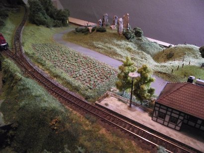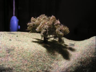 Und wird dann begrünt. Die dunklen Flecke markieren die Standpunkte für spätere Bäume und Büsche.