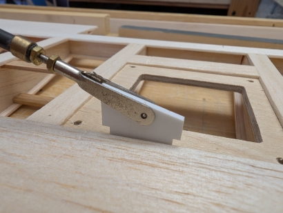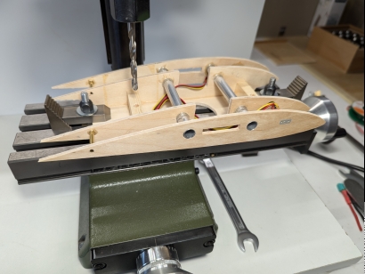 Die beiden Löcher für die Befestigungsschrauben müssen sehr genau positioniert sein, damit das Teil wirklich rechtwinklig auf dem Rumpf liegt. Koordinaten-Bohren mit der Fräse ist dafür eine große Hilfe.
