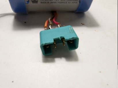 Ich habe keine Dokumentation von Multiplex über die Pin-Belegung der Verbindungsstecker finden können. Also gilt es messen und ausprobieren. Im Bild der Anschluss für das Querruder, Impulsleitung ganz links. Der Pin ganz rechts wäre Impuls für Landeklappe, bleibt jedoch frei. Die Pins der beiden Stecker für die rechte und linke Tragfläche hat Multiplex sinnvollerweise gleich belegt.