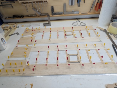 Jetzt kann der eigentliche Bau der Tragfläche beginnen.
