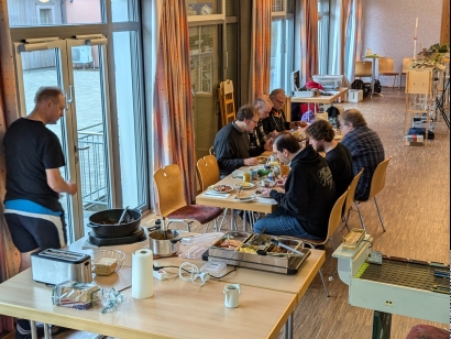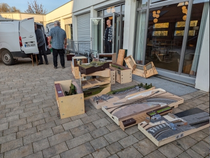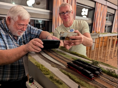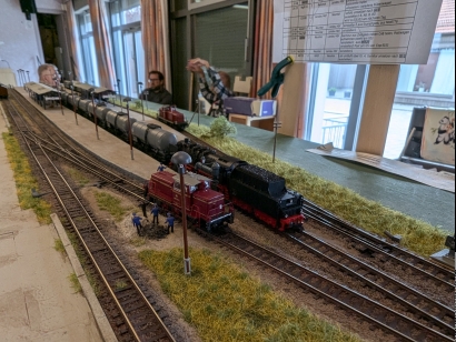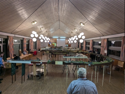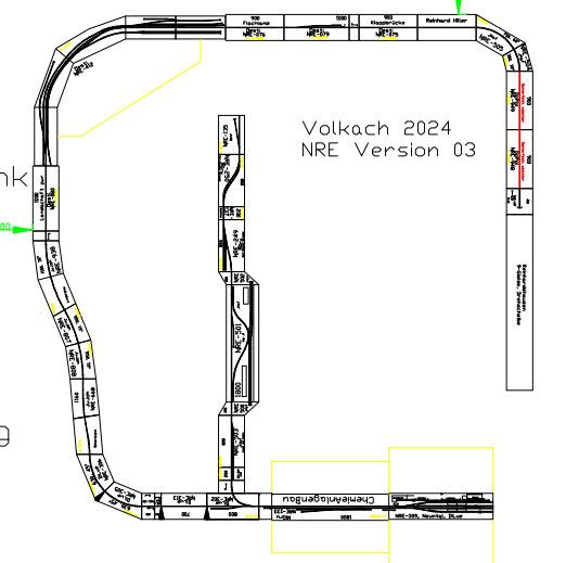 N-RE-Treffen in Volkach 1.-3.11.2024 aus Neuntals SichtEigentlich waren wir ja nur Gäste bei FREMO Great-britN, dem britischen Zweig von N-RE. Da der Saal im Pfarrheim in Volkach jedoch Platz für ein weiteres überschaubares Modul-Arrangement bot, bekamen die "Kontinental-Bahner" das Angebot, einen Teil des Raumes für ein eigenes Arrangement nutzen zu können, welches dankend angenommen wurde. Eine eingleisige Strecke führte vom Schattenbahnhof Reinhardshausen über den Zwischenbahnhof Unterhausen zu Endbahnhof Neuntal. Klingt langweilig. War es nicht. Was für mich den Betrieb so interessant machte, war vor allem der von Michael entwickelte ausgefeilte Fahrplan und die erweiterte "Umgebung" von Neuntal. In Neuntal waren als Satelliten der Hafen (Kai 4), Chemieanlagenbau (CAB) und das Auslieferlager (AuLa) angeschlossen, von denen die beiden letztgenannten eher als Ladestellen von Neuntal betrieben wurden, während der Hafen als autonome Einheit fungierte. Züge von und zum Hafen mussten in Neuntal Kopf machen. Gespielt wurde ein Betrieb um das Jahr 1971 herum, also Diesel und ein Dampfer. Michaels Fahrplan schaffte den Spagat, Neuntals Möglichkeiten auszunutzen, ohne jedoch den Bahnhof zu überlasten. Dabei wurde Neuntals Kernkompetenz, nämlich die Behandlung von Personenverkehr, gut ins Spiel gebracht. Es wurden Personenzüge umgebildet, Verstärkungsgruppen ein- und ausgestellt, Eilgut- und Post-Frachten behandelt und zwischendrin der bescheidene Güterverkehr abgewickelt. Und dazwischen immer mit dabei die Hafenzüge. Ich kann sagen, dass dieser Fahrplan der beste war, den Neuntal je gesehen hat. Im praktischen Betrieb hat der Fahrplan dann auch gut funktioniert. Bezüglich des Güterverkehrs wurden Neuntal, AuLa und CAB angemessen bedient. Unterhausen mit seinen drei langen Durchfahrtsgleisen und vielen Ladestellen ist für sich bereits für interessanten Personen- und Frachtverkehr gut. Hinzu kam noch das dicht daran angeschlossenen THW-Depot (ex. BW-Depot). Somit ist auch Unterhausen sehr artgerecht betrieben worden. Zur Technik reichen eigentlich 2 Worte aus: Hat funktioniert. Unterhausen wurde von Karstens neuen Einfahrtssignalen gedeckt. An Neuntal wurden erstmals die bereits seit Beginn an im Bedienpult vorgesehenen 2 Einfahrtssignale verwendet. Das eine deckte die Einfahrt aus Richtung Unterhausen, das andere die Einfahrt vom Hafen. AuLas Abzweigweiche wurde nach langer Zeit wieder per Adapter als tatsächlichen Abzweig verwendet. Und dann waren da noch eine Reihe neuer Streckenmodule, die allesamt unauffällig ihren Dienst taten. Leider nicht ganz selbstverständlich bei N-RE: Bis auf ein paar unfertige Flecken im Hafen waren alle Module weitestgehend fertig gestaltet. Selbst die neuen Module! Diesmal also keine der sonst häufig anzutreffenden weitläufigen Sperrholzflächen. Soweit zum technischen Teil des Treffens. Was die die Stimmung angeht: Es war ein Treffen, das vom Spaßfaktor her bei mir auf den vorderen Plätzen liegt, wenn nicht sogar ganz vorne. Vielen Dank an alle Beteiligten. Einen ganz besonderen Dank an Markus für alles, was ich hier nicht schaffe aufzuzählen. Und an seine Eltern im Hintergrund. Ebenfalls einen besonderen Dank an Michael für den genannte Fahrplan. Ich hätte sehr gerne noch einen Tag drangehängt. Nachtrag: Auf dem Treffen wurde ich auf die von mir benutzte BfO in Neuntal angesprochen. Hier einige Erläuterungen dazu: Rechtzeitig vor dem Treffen schaue ich mir den Fahrplan und die von XPLN generierte BfO an, um den Fahrplan zu verstehen, um ggf. Fragen stellen zu können und um eine Arbeits-BfO zu erstellen, die ich dann auf dem Treffen benutze. Grund dafür ist, dass die von XPLN generierte BfO für mich nicht intuitiv ist. Ein einzelner Zug in Neuntal hat darin u.U. 4 Zeilen. Dies liegt angeblich daran, weil Neuntal ein Kopfbahnhof ist. Ich editiere diese BfO in folgender Weise: